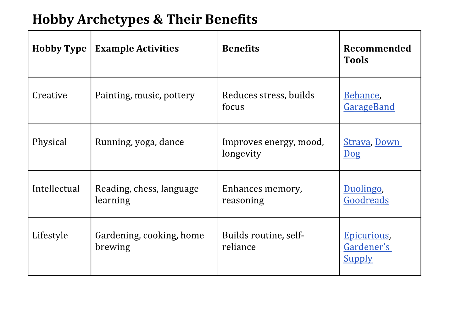 Hobby Archetypes & Their Benefits